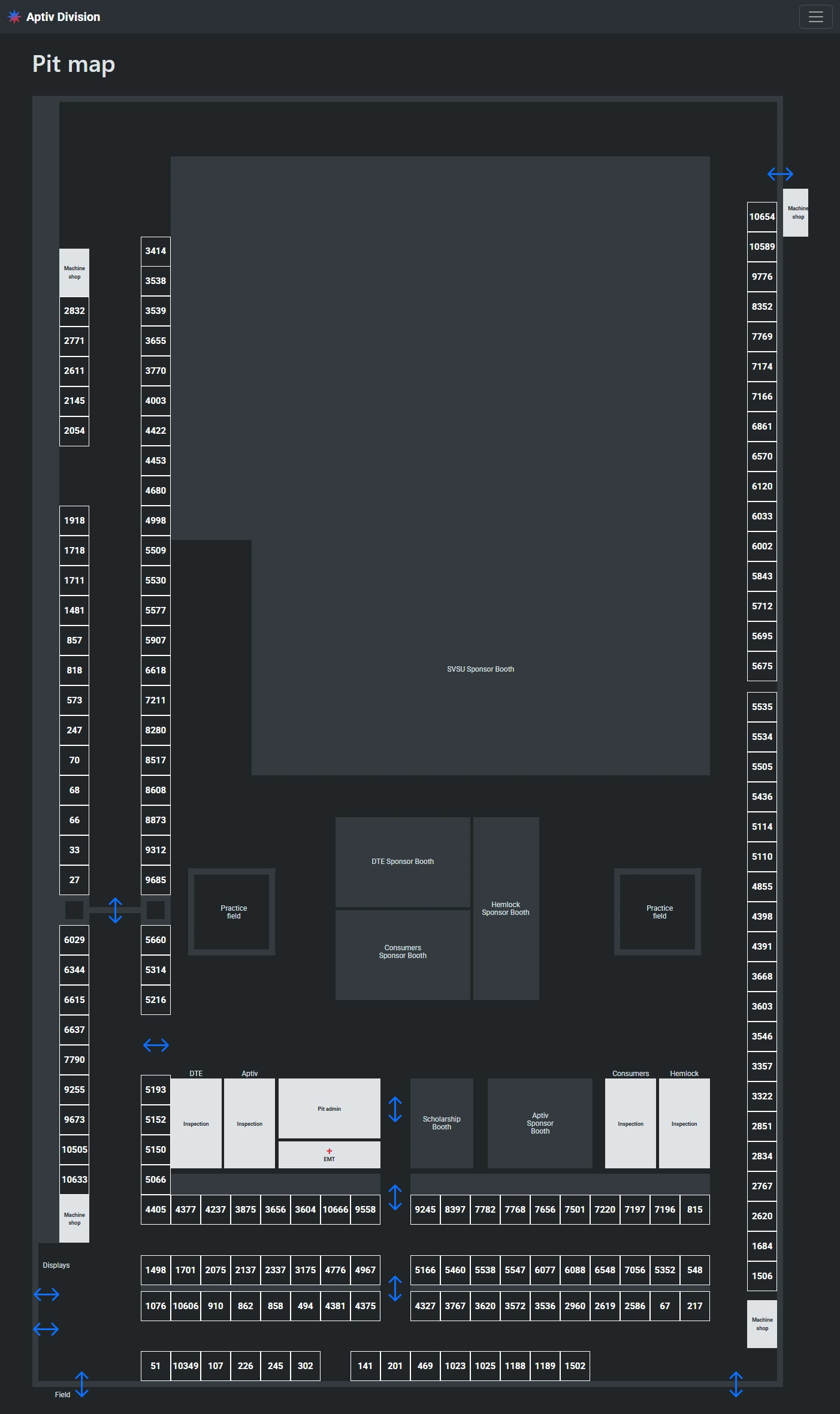 If desired, a single pit map can be designed that includes pits for all divisions. Once published for one division, export the map and import it into all other divisions. Then, for each division assign their respective teams. When viewing the map from any division, teams from all divisions will be included.